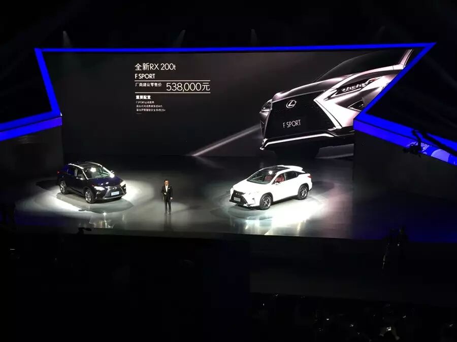 2015年11月12日,雷克薩斯在深圳寶安體育館發(fā)布了LEXUS全新一代的RX200和RX450h車型。發(fā)布會(huì)由外場(chǎng)接待區(qū)和內(nèi)場(chǎng)主舞臺(tái)區(qū)組成,以“新視界,新世界”為主題,整個(gè)會(huì)場(chǎng)運(yùn)用了多種最新的多媒體展示技術(shù),每一部分都是藝術(shù)和科技的匠心獨(dú)運(yùn)的結(jié)合,全方位地展示了全新雷克薩斯RX的創(chuàng)新、尊貴和品質(zhì) 。