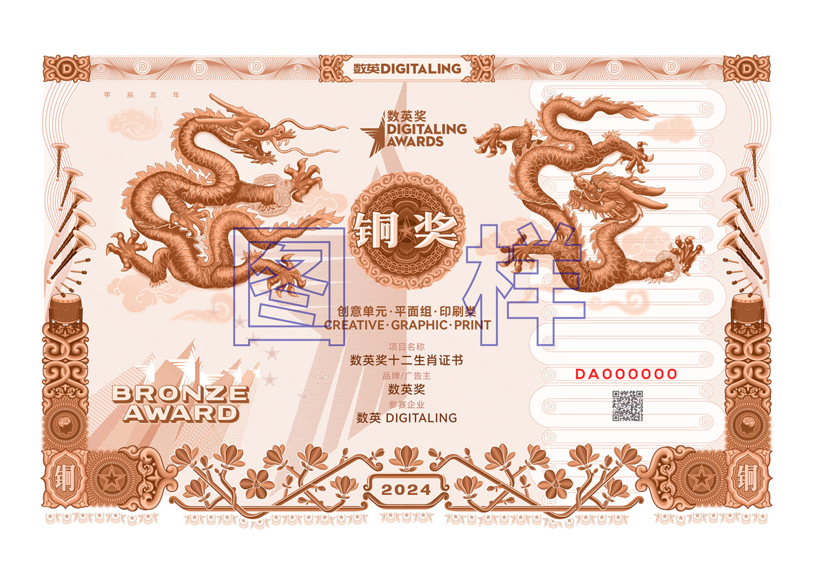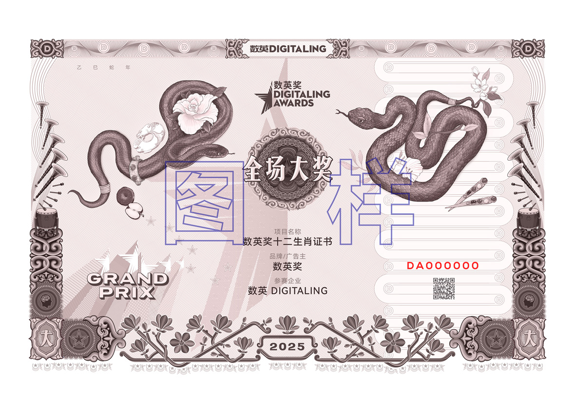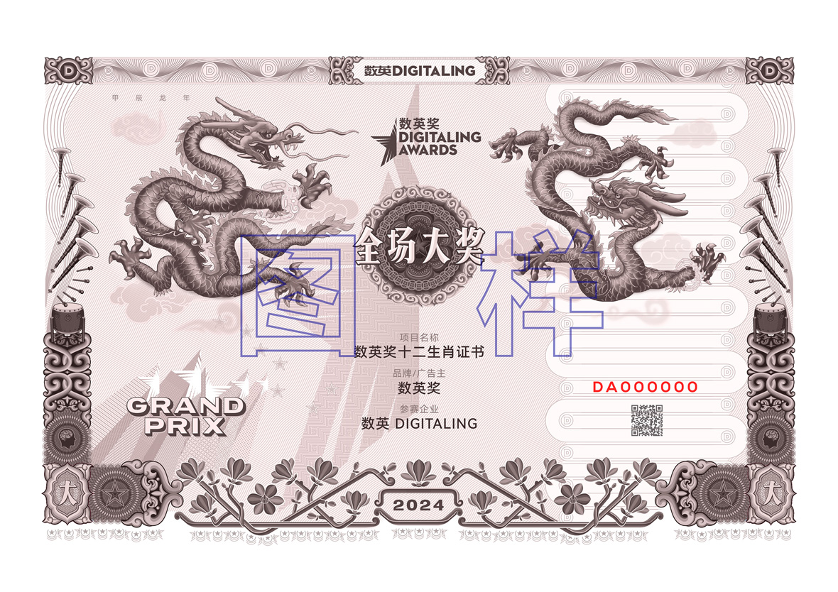我們暫且將證書命名為:數(shù)英獎(jiǎng)十二生肖證書。